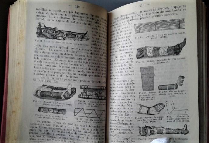 "En las circunstancias por que desgraciadamente atraviesa nuestra madre Patria creemos cumplir un sagrado deber dando cuenta de una obrita de suma actualidad, que por su carácter cosmopolita, inherente á todo trabajo científico, consideramos de gran utilidad para nuestros cirujanos militares". El recensor dice haber hecho lo posible para que la obra sea comprada por el Cuerpo de Sanidad Militar y de la