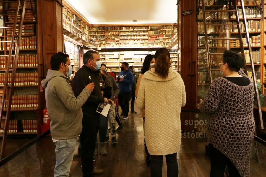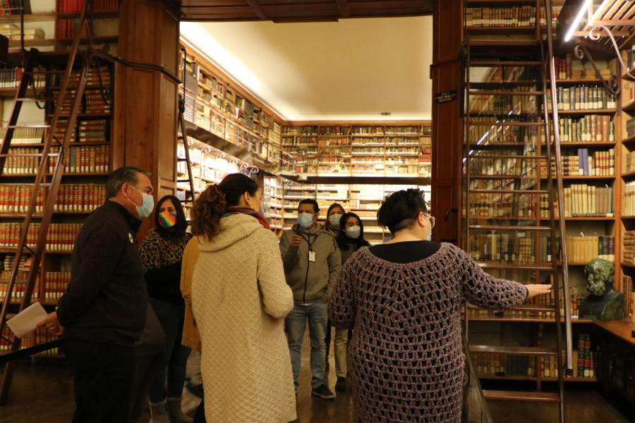 Este domingo se llevó a cabo la visita guiada a la exposición "Estilos de encuadernación artesanal y artística en la colección de la Biblioteca Patrimonial Recoleta Dominica", muestra que aborda los diversos estilos de encuadernación presentes en la biblioteca de origen conventual.